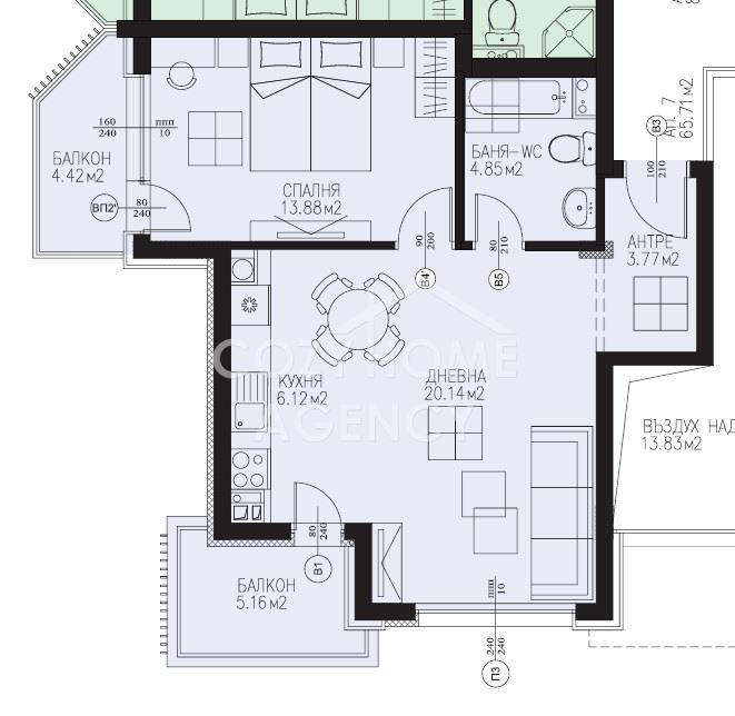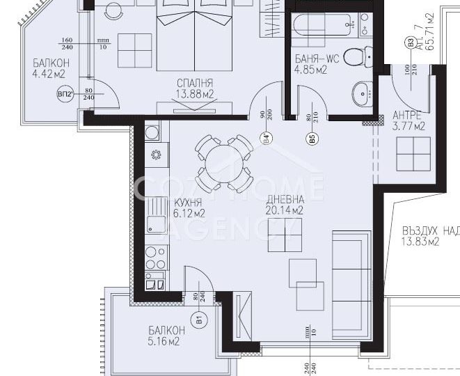 Чиста площ: 65.71 кв.м.